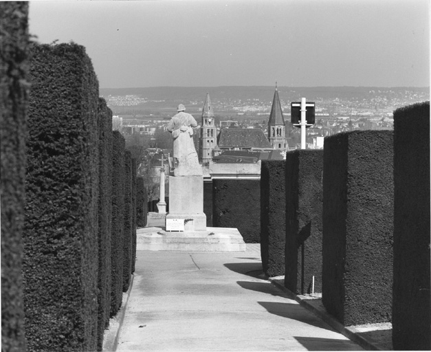 L'allée centrale est structurée par des ifs taillés.