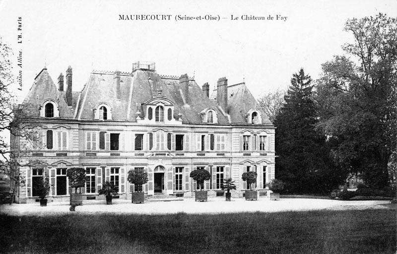 En 1474, un "hôtel" est attesté. La terre et la seigneurie du Fay passe entre diverses mains. En 1670 notamment, Claude de Fusée, seigneur de Voisenon, vend à Jean-Baptiste de Guersans "la terre et seigneurie du Fay consistante en une maison et ferme appliquée à plusieurs bâtiments et édifices, chapelle, jardin clos de murs, et terres étant au pourtour". Plusieurs propriétaires se succèdent et en 1739 Louis Miotte de Ravannes l'achète à Siméon Michel Cavelier qui s'en était porté acquéreur en 1736. Jean Baptiste Miotte de Ravannes en hérite de son père en 1777 et le vend en 1779 à Armand Domilliers de Thésigny qui en est toujours propriétaire en 1821. Monsieur de Sainte Marie l'achète en 1827. C'est lui qui a fait reconstruire le château avant de revendre la propriété en 1855 à Louis Napoléon Lepic. Selon la monographie de l'instituteur il aurait fait réaménager le parc par les frères Bühler. Gustave Roy, riche négociant, l'achète en 1861. Ses mémoires font mention de travaux d'assainissement effectués à cause du sous-sol humide et de la reconstruction des communs par l'architecte Nénot . Le château est resté dans la famille Roy jusqu'au milieu du du 20e siècle