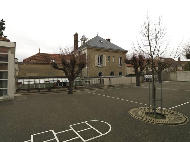 La mairie couverte en ardoise est encadrée par les deux salles de classe en rez-de-chaussée couvertes en tuile mécanique. L'axe central est marqué par une lucarne à fronton cintré surmontée d'un campanile