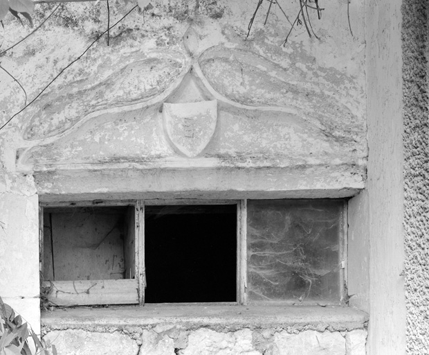 Le blason de la famille Aymer de la Chevalerie est sculpté sur le linteau de la fenêtre centrale de la façade sud-est du logis.