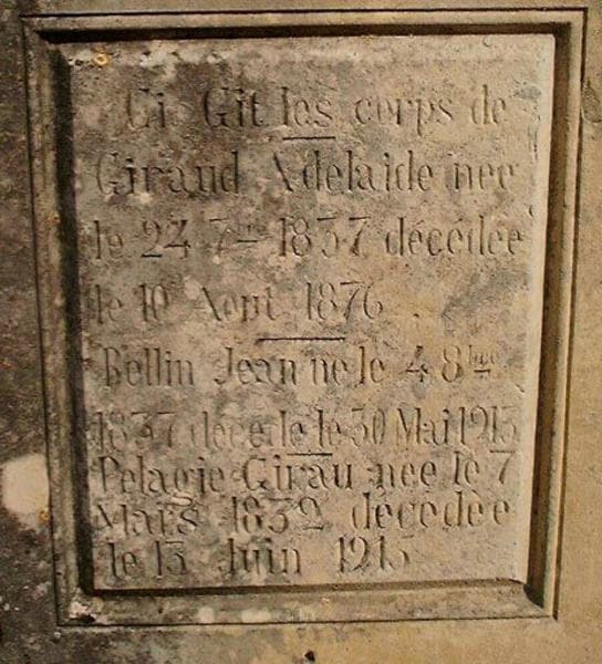 Tombeau d'Adélaïde Giraud, Jean Bellin et Pélagie Giraud