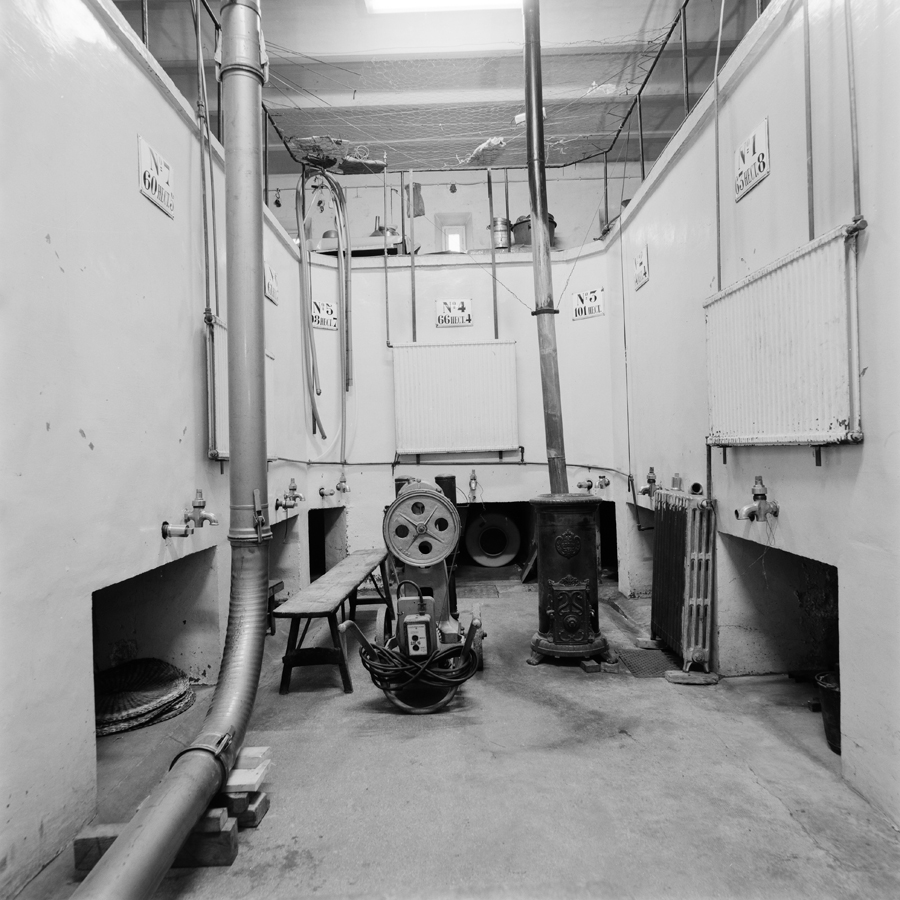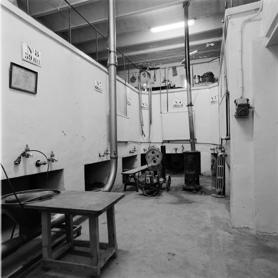 L'aile ouest en rez-de-chaussée abrite le matériel dans une salle carrelée ; l'aile est sur 1 étage carré est le local de stockage qui abrite les cuves en béton disposées en fer-à-cheval. Un petit bâtiment est situé à l'ouest de l'ensemble. La façade nord est décorée de carreaux de faïence.