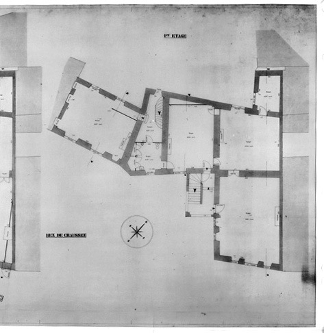 escalier hors-oeuvre : escalier tournant à retours avec jour, en maçonnerie ; escalier dans-oeuvre : escalier droit, en maçonnerie