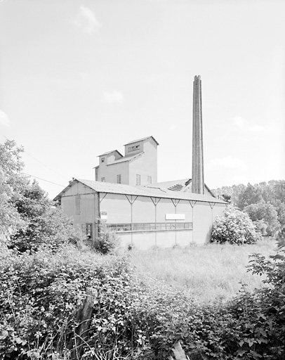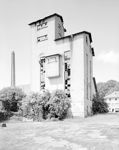 Atelier de fabrication en moellon enduit couvert d'un toit à longs pans en ciment amiante et ardoise ; logement de contremaître et bureau, en moellon enduit, à 1 étage carré et 1 étage de soubassement, couvert d'un toit à longs pans à 1 croupe en tuile plate ; atelier de réparation en pan de fer et béton couvert d'un toit à longs pans en ciment amiante ; cheminée d'usine en éléments de béton précontraint