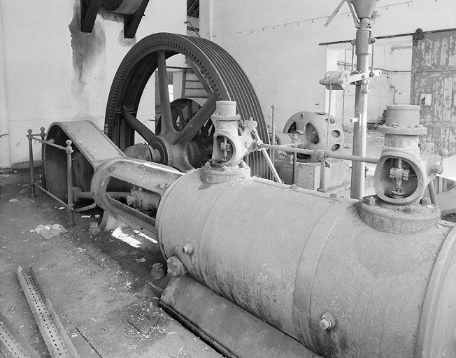 atelier de fabrication ; chaufferie ; atelier de réparation ; cheminée d'usine ; bureau d'entreprise ; logement de contremaître ; pont-bascule