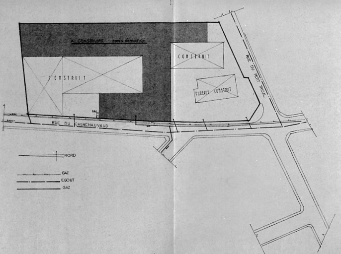 atelier de fabrication ; entrepôt industriel ; cheminée d'usine ; logement
