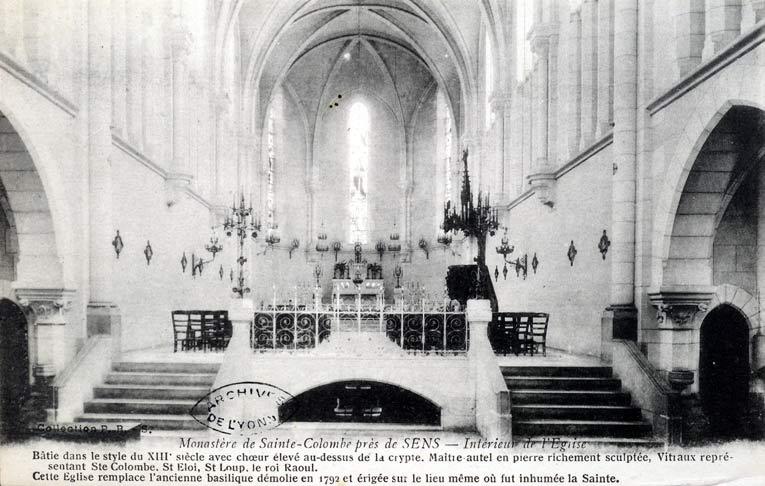L'abbaye fut fondée en 620 par Clotaire II, en l'honneur de sainte Colombe, martyrisée près de la fontaine d'Azon. L'abbaye fut pillée par les Sarrasins en 771, incendiée en 936, dévastée pendant les guerres des 14e et 16e siècles. Mais sur les vestiges du tombeau de sainte Colombe, l'archevêque de Sens, Henri Sanglier, et l'abbé Théobald posèrent en 1142 les pierres de fondation d'une nouvelle église que le pape Alexandre III consacra lui-même le 16 mai 1164. Vendus en 1790, les bâtiments de l'abbaye royale de Sainte-Colombe servirent ensuite de carrière de pierre. Il ne reste de l'Ancien Régime que quelques travées du réfectoire médiéval, le bâtiment conventuel, l'écurie construite en 1737 par Herbet, les deux pavillons édifiés par d'Aviler de part et d'autre de l'entrée en 1753, trois ponts reconstruits en 1766 par Claude-Nicolas Ledoux, ainsi que quelques bâtiments à usage agricole. En 1842, les Religieuses de la Sainte Enfance de Jésus et de Marie, congrégation créée à Sens en 1837, acquièrent les restes de l'abbaye. Sous la règle de Saint Augustin, les Soeurs se consacrent à la prière, à l'éducation des enfants abandonnés et au soin des malades. Sur les vestiges du tombeau de Sainte-Colombe, elles font édifier par Lefort une crypte et une chapelle néo-gothique consacrées en 1874. Un vaste bâtiment conventuel est construit en 1898. Diminuant en nombre, les soeurs fusionnent en 1947 avec les Soeurs de la Charité de Nevers (couvent de Saint-Gildard). Le domaine abrite aujourd'hui une maison de convalescence (installée dans l'ancien bâtiment conventuel de 1898) , un lycée professionnel et l'Institut de formation et ressources en économie sociale, de nouveaux bâtiments ayant vu le jour pour l'occasion. Le centre de convalescence dispose de 63 lits et accueille des patients en suite opératoire de chirurgie digestive lourde, de chirurgie carcinologique, de chirurgie orthopédique et les suites de traitements médicaux lourds.