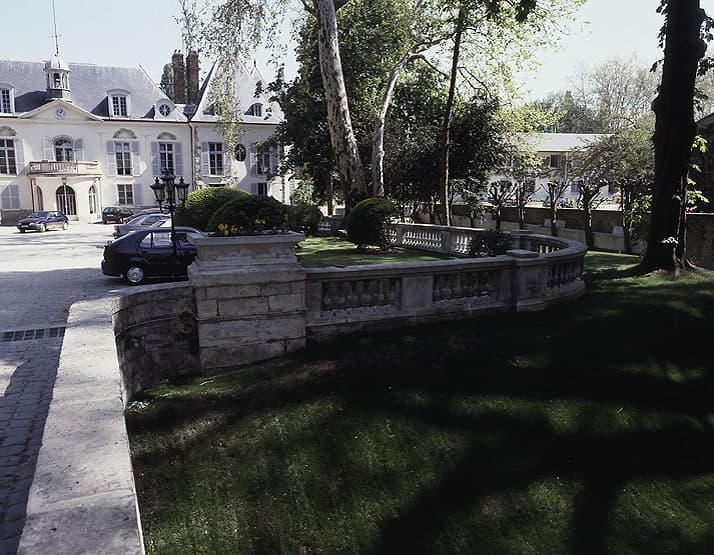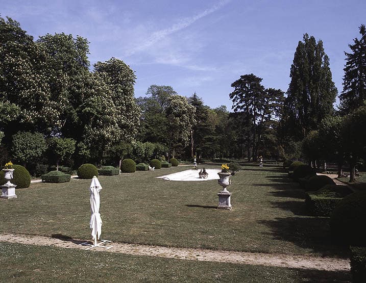 cour ; douves ; communs ; parc ; bassin ; étang ; grotte artificielle ; canal de jardin ; buffet d'eau
