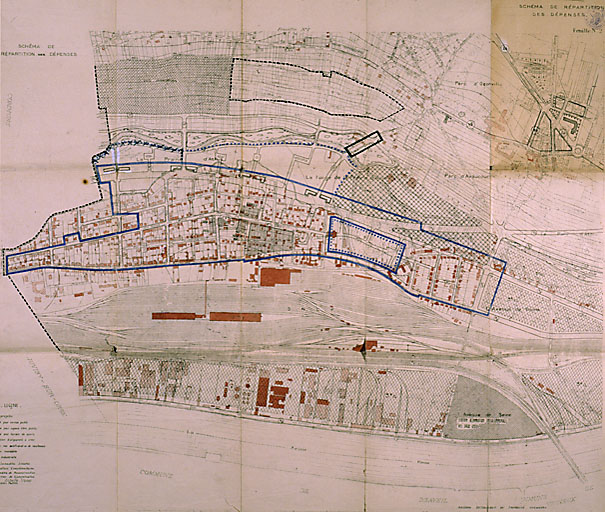 Le 18 avril 1944 les bombardements alliés qui ont pour cible la gare de triage de Juvisy, plate-forme d'approvisionnement de l'armée allemande, détruisent le quartier du Val, atteint aussi par les attaques aériennes des 28-29 mai visant le pont de Lyon. 453 immeubles sont anéantis et 490 autres partiellement endommagés. Le projet de reconstruction et d'aménagement de la ville, déclarée sinistrée par un arrêté du Ministère de la Reconstruction et de l'Urbanisme, est établi par les urbanistes André Masson-Detourbet et Clément Tambuté. Il prévoit l'extension du périmètre de reconstruction jusqu'à l'Orge moyennent d'importants travaux de remblaiement dans les terrains compris entre la rivière et le Mort-Rû. Deux zones de compensation sont créées, l'une en bordure de l'Orge, au lieu-dit la Prairie d'Athis, l'autre entre l'église et le groupe scolaire du Val. Deux modifications principales sont apportées au réseau viaire : prolongement de l'avenue de l'Orge située sur le territoire de Juvisy par une voie de 22 m de large (avenue du 18 Avril) , remplacement de voies orientées nord-sud par un réseau de rues perpendiculaires greffées sur l'avenue Jean-Jaurès. Le PRA prévoit également la surélévation du quartier pour prévenir les inondations (exhaussement de la voirie de 50 à 100 cm) et l'aménagement d'une promenade le long de l'Orge. Il reçoit l'approbation définitive du MRU le 27 mai 1948. L'association syndicale de remembrement établit entre 1948 et 1953 le nouveau parcellaire à partir du plan-masse dressé par les urbanistes ; 43 îlots ont été tracés, dont 12 numérotés de A à L situés dans les zones de compensation. Les opérations de reconstruction ont pour maîtres d'ouvrage deux associations syndicales de reconstruction qui regroupent les sinistrés. Pour ses 50 adhérents, l'ASR de la Prairie d'Athis fait édifier dans la zone de compensation du même nom un ensemble de 57 pavillons mitoyens en pierre de taille conçus selon une étude normalisée par l'architecte Jean Hardel assisté de trois collaborateurs, sous la direction de Léo Mendelssohn, architecte en chef. L'ASR de l'Ouest du Val d'Athis (240 membres) prend en charge la reconstruction de 35 îlots et des pavillons isolés situés en dehors de la zone remembrée par îlots (Cottage d'Athis et bords de Seine) , répartie en programmes annuels s'échelonnant de 1948 à 1953, sous la direction du même architecte en chef ; en 1949, les architectes d'étude sont regroupés en un bureau chargé de promouvoir la standardisation tant des pièces de structure que des matériaux de gros oeuvre (béton de pouzzolane) , mais la plupart des 245 édifices reconstruits sont édifiés en meulière, matériau de prédilection des sinistrés. Quelques immeubles de 3 étages figurent parmi les pavillons réservés en majorité au logement unifamilial mais abritant aussi deux ou quatre logements par niveau ; une cité se compose de 3 immeubles de 40 logements réalisés suivant la procédure du préfinancement (Cité des Fleurs) destinée à faciliter une opération de reconstruction en habitat collectif. Le MRU prend directement en charge la construction de deux immeubles collectifs d'Etat (ICE) situés dans la Prairie d'Athis, à la limite de Juvisy (ainsi que d'un lotissement de 50 maisons préfabriquées, sur le plateau). Les équipements publics du quartier (groupe scolaire, église Notre-Dame-de-la-Voie, dispensaire-douches, édifiés entre 1950 et 1956) sont regroupés en bordure de l'avenue Jean-Jaurès ; un temple voit le jour en 1962.