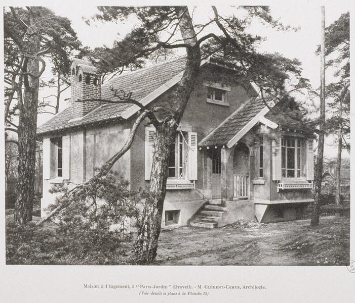 Cette maison est l'un des 39 pavillons édifiés en quatre ans (1920-1923) par les architectes Clément-Camus et Larminat pour la société coopérative Paris-Jardins. Elle n'a pas été modifiée.