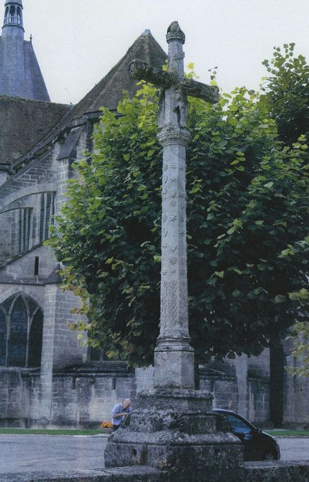 Croix en pierre du 16s, près de la Halle, au milieu du pont