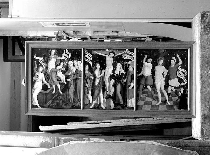 © Monuments historiques, 1992. Cette notice reprend intégralement les termes de l’arrêté de protection au titre des Monuments historiques. Elle répond à l’obligation réglementaire du ministère de la Culture d’établir la liste générale des immeubles protégés (art. R. 621-80 du Code du patrimoine). Elle est donc opposable et fait foi juridiquement. Aucune copie numérique ou papier ne sera fournie par courrier ni courriel. Le dossier de protection complet et l’arrêté sont consultables uniquement sur place, dans la salle de lecture de la Médiathèque du patrimoine et de la photographie (MPP), à Charenton-le-Pont (Val-de-Marne).