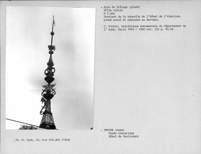 © Monuments historiques, 1992. Cette notice reprend intégralement les termes de l’arrêté de protection au titre des Monuments historiques. Elle répond à l’obligation réglementaire du ministère de la Culture d’établir la liste générale des immeubles protégés (art. R. 621-80 du Code du patrimoine). Elle est donc opposable et fait foi juridiquement. Aucune copie numérique ou papier ne sera fournie par courrier ni courriel. Le dossier de protection complet et l’arrêté sont consultables uniquement sur place, dans la salle de lecture de la Médiathèque du patrimoine et de la photographie (MPP), à Charenton-le-Pont (Val-de-Marne).