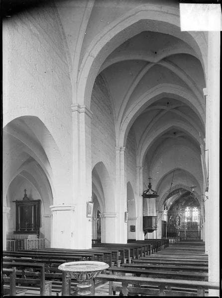 Eglise de vastes dimensions possédant une nef de 6 travées avec bas-côtés et un choeur de 2 travées se terminant par un chevet plat ; elle remonte au milieu de 12e siècle.