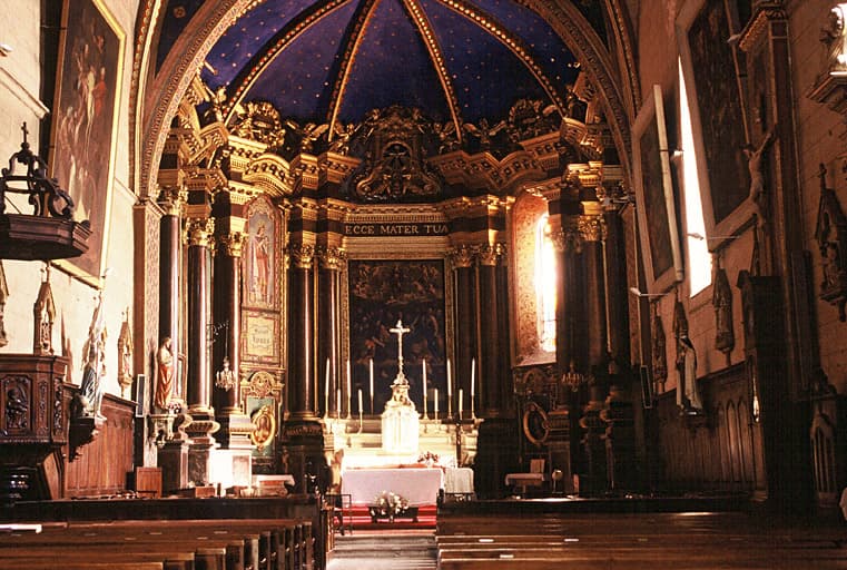 Ancienne cathédrale construite entre 1604 et 1635 dans un style gothique post-médiéval pour remplacer la cathédrale romane. Caractère défensif affirmé : construction d'un bastion en 1692. L'église se rattache au mur d'enceinte. Edifice orienté à nef unique.