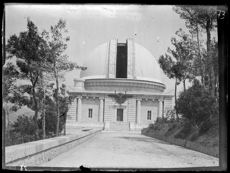 Observatoire créé à l'initiative et grâce aux moyens de Raphaël Bischoffsheim, fils de banquier passionné d'astronomie. Il acquiert le site au sommet du Mont-Gros en 1879 et demande à l'architecte Charles Garnier de concevoir le projet architectural dont les travaux commencent en 1881. L'abri de la grande lunette équatoriale est réalisé avec l'aide de l'ingénieur Gustave Eiffel, constructeur d'une coupole cylindro-sphérique en charpente métallique qui, pour permettre la rotation, repose dans une cuve circulaire remplie d'eau. Ensemble inauguré en 1887. En 1931, l'observatoire reçoit de la firme Carl Zeiss de Iéna, au titre des dommages de guerre, deux nouveaux instruments équatoriaux, un chercheur de comètes et un astrographe double. Pour les abriter, la coupole Schaumasse et le bâtiment et coupole de l'astrographe sont construits par l'architecte niçois Honoré Aubert. Importance scientifique des équipements.