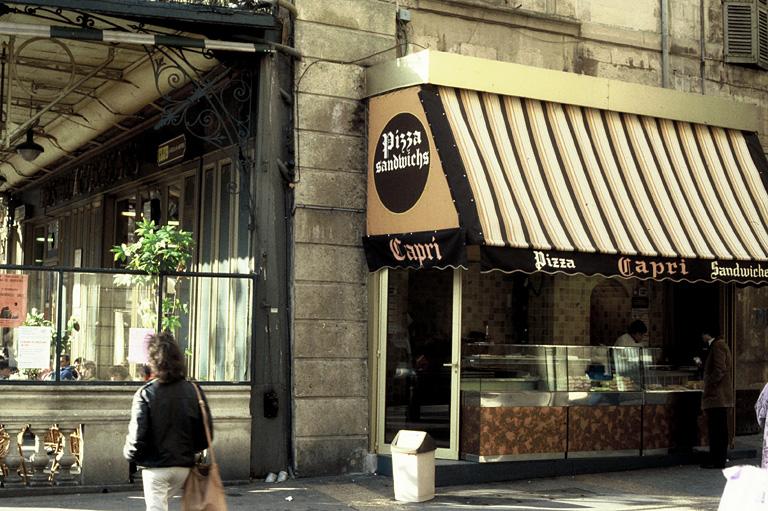 Les façades y compris la marquise et les toitures, ainsi que les trois salles de café avec leur décor (cad. AE 282) : inscription par arrêté du 28 décembre 1984