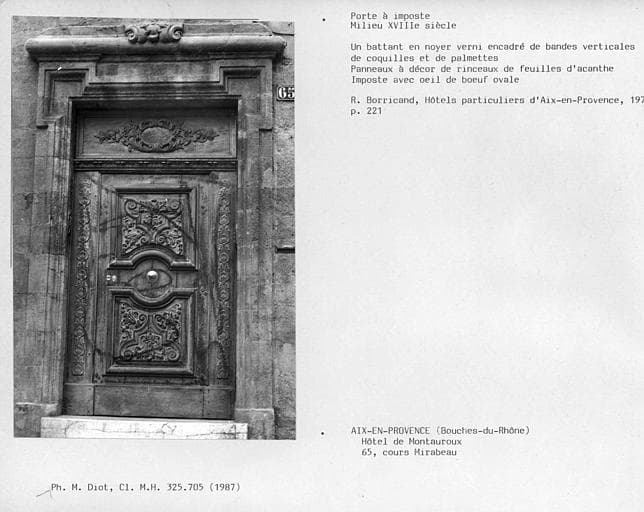 Provence-Alpes-Côte d'Azur ; Bouches-du-Rhône (13) ; Aix-en-Provence ; 65 cours Mirabeau