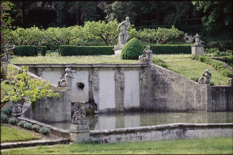 Jardin, y compris les portails, les bassins, les statues, les vasques, le système hydraulique et les façades et toitures de la maison du jardinier (cad. AC 18 à 28) : classement par arrêté du 5 juillet 1993