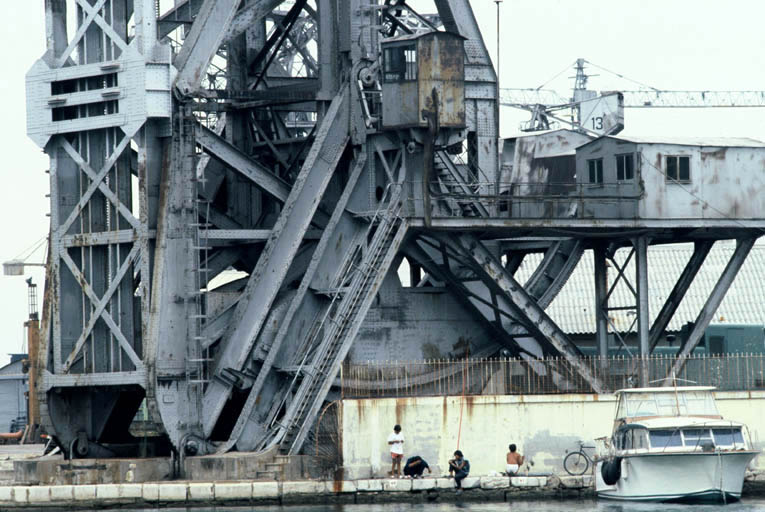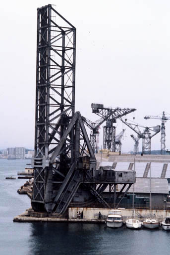 Les chantiers navals de la Seyne-sur-Mer sont créés en 1856 et produisent essentiellement des bâtiments pour la marine marchande. Le pont-levis est dessiné en 1914 et construit de 1915 à 1917 par l'entreprise Daydé et Pillé pour les Forges et Chantiers de la Méditerranée. Destiné à conduire la ligne du chemin de fer du PLM jusqu'aux chantiers navals, l'ouvrage métallique, financé par les dommages de la guerre, comporte une travée levante de 40 mètres de portée, pesant 123 tonnes, mue par un moteur électrique. Les pivots des articulations ont été changés en 1927 et en 1961, mais, n'étant plus en usage depuis la fermeture des chantiers navals dans les années 1980, le pont est mal entretenu et reste en position levée.
