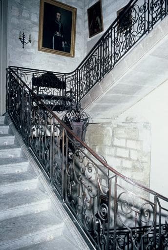 Façade et rampe d'escalier en fer forgé : inscription par arrêté du 23 novembre 1949