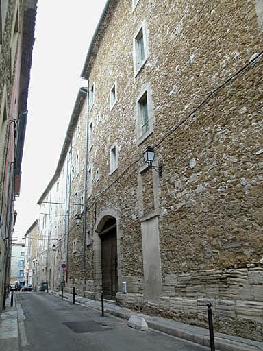 Provence-Alpes-Côte d'Azur ; Vaucluse (84) ; Carpentras ; rue des Saintes-Maries ; à l'angle de la rue des Frères-Laurens