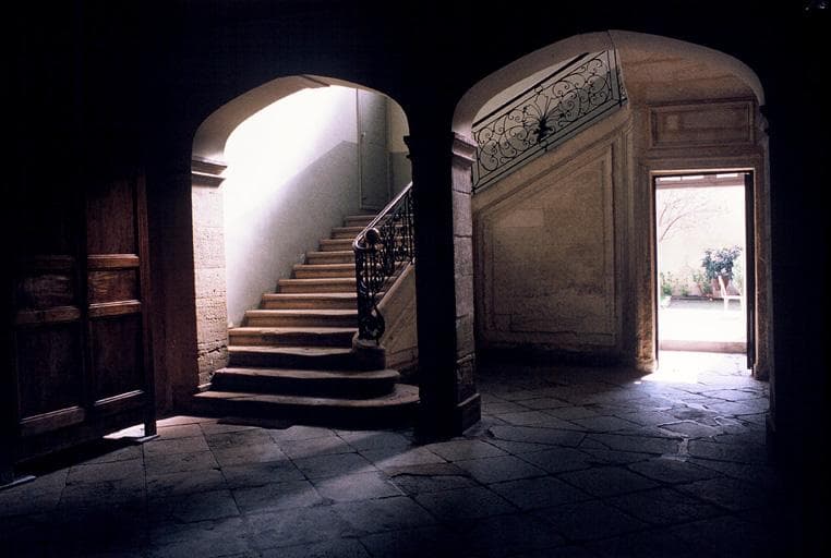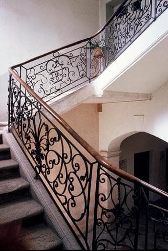 Rampe en fer forgé de l'escalier : inscription par arrêté du 28 octobre 1949