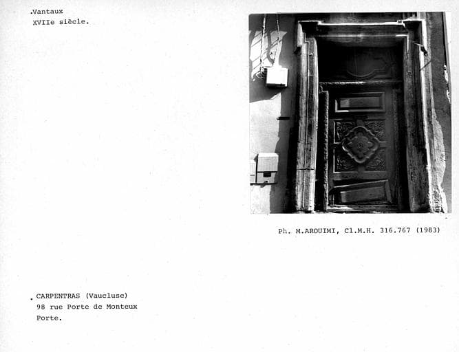 Encadrement et vantaux de la porte du 17s : inscription par arrêté du 28 octobre 1949