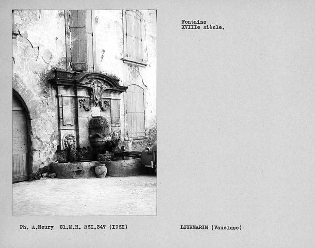 La fontaine publique, adosssée au mur d'une maison de la place publique, date de la fin du 17e siècle. Elle est de composition très simple ; le cartouche ne porte plus d'amoiries ; la marche, qui dégageait la vasque, a disparu du fait de l'exhaussement de la voie.
