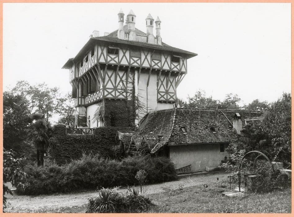 Château construit à partir de 1880, conçu par Mounet-sully, célèbre acteur de l'époque 1900. De par la personnalité de son propriétaire, ce fut le lieu de rencontre des plus grands personnages du monde du théâtre et des arts, ainsi que de divers prix de Rome de sculpture. Rodin aurait sculpté quelques chapiteaux du cloître et Rostand y aurait travaillé à son Cyrano de Bergerac. £L'édifice est un curieux imbroglio de postiches architecturaux. Une tour carolingienne compliquée d'un petit donjon roman s'élève au sud d'un bâtiment en équerre, comportant, outre une galerie de cloître, une construction de style gothique. A l'intérieur se trouve une petite salle de théâtre où les frères Mounet donnaient quelques représentations privées. Une décoration hétéroclite orne murs et plafonds : niches sculptées, encadrements, moulures, ferronneries aux initiales de l'acteur, mosaïque néo-byzantine, fresques, foisonnent selon un ordre imaginé par l'acteur.