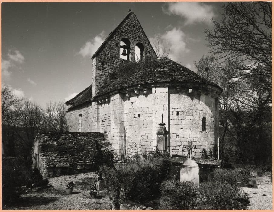 Certaines sculptures permettent de dire que l'église existait au 12e siècle. En 1340, elle dépendait de l'archiprêtré de Daglan. En 1350, elle fut unie à la paroisse de Castelnaud. L'évêque de Sarlat en était collateur. L'édifice se compose d'une nef, d'un choeur et d'une abside semi-circulaire. La nef a été revoûtée au 18e siècle d'un plafond lambrissé. Chapiteaux sculptés. Sur l'arc triomphal s'élève un clocher en fronton percé de deux baies. Pour accéder aux cloches, il avait été aménagées, sur la face sud de la toiture des lauzes saillantes en forme de marches.