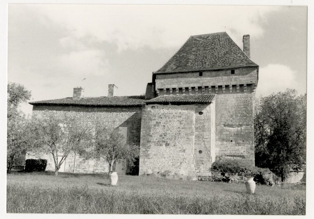 Les éléments archéologiques subsistants (fenêtres et cheminées) , permettent d'établir que le donjon remonte au plus tôt, au 14e siècle, mais plus sûrement de la seconde moitié du 15e ou du début du 16e siècle. L'escalier droit plaqué sur la façade ouest et le corps de logis principal pourraient remonter au 17e siècle. Ce château a subi un début de démolition en 1793, et une grande partie des murs du corps de logis a dû être reconstruite au 19e siècle.