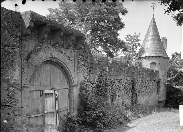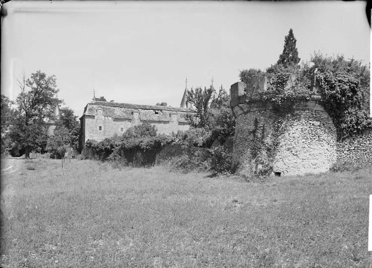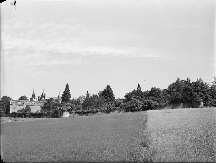 Un quadrilatère de murailles renforcées de tours basses, enserre le château. Une douve court sur l'un des côtés. Près du portail d'entrée, tour ronde du 15e siècle. Dans la cour d'honneur, tour ronde du 15e siècle et pavillon rectangulaire dont les murs et les toits sont galbés d'époque Régence, avec galerie à terrasse. D'importants communs tiennent tout un côté de la cour d'honneur.
