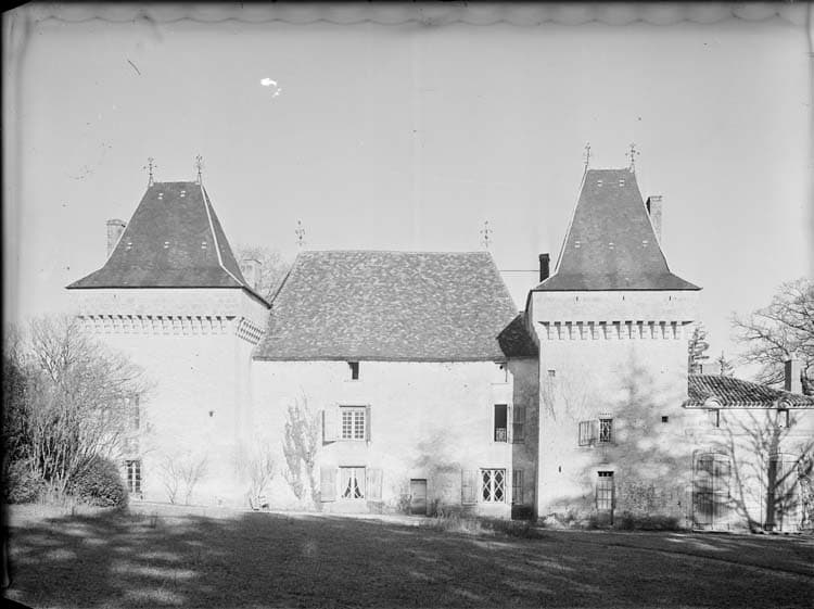 Le château actuel fut rebâti vers la fin du 15e siècle, sur des fondations plus anciennes. La dernière prieure de l'abbaye de Fontaine y naquit. Elle fut tuée et brûlée à la Révolution, et repose dans l'église de Saint-Pardoux. Le corps de logis est flanqué de deux énormes tours à mâchicoulis, et est défendu au nord par une troisième tour désaxée sur la gauche. A l'est, chartreuse du 18e siècle à un étage, soudée à la forteresse en équerre. Des pilastres rejoignent le toit.
