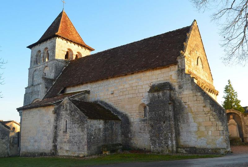 Edifice d'origine romane qui a subi d'importantes modifications au 15e siècle. Il a conservé, de la première période, une abside semi-circulaire avec sa toiture primitive en tuiles pierres posée sur la voûte, et un clocher dont l'étage du beffroi est décoré d'arcatures. Ce clocher de plan carré précède l'abside et renferme une coupole. Toutes les autres parties de l'édifice ont été recouvertes, au 15e siècle, de voûtes d'arêtes.