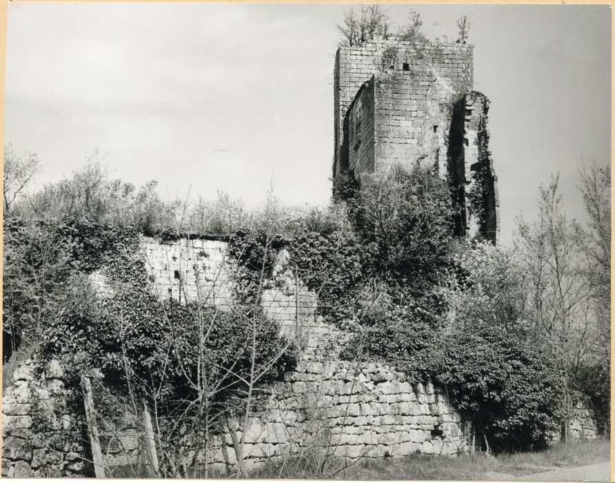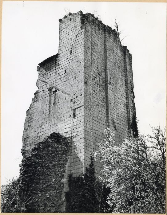 Le château est mentionné au début du 14e siècle. En 1373, il est pris par les Anglais et donné par le duc de Lancastre, au capitaine du château de Bergerac, Heliot Buada. La Révolution acheva la ruine de l'édifice.££Le plan général est un quadrilatère irrégulier occupant l'extrémité d'un plateau qui en a été séparé par une coupure. Le donjon défendait cette coupure et ses approches. Les parties ouest et sud ont été refaites au 14e siècle. Une terrasse, défendue autrefois par un parapet, couvre le pied de la tour à l'ouest et, formant courtine, se relie à l'angle des murailles par une forte tour qui a été renforcée plus tard par un talus ou glacis maçonné. La muraille suit le coteau que, de ce côté, défend une seconde enceinte fortifiée par des tours carrées. Elle forme un angle saillant au moyen d'une petite tour carrée au sud-ouest et revient à la porte d'entrée, défendue par des terrasses supérieures et un système de murs qui s'appuyaient au donjon. L'accès au château se faisait par un pont-levis donnant accès à un couloir voûté et formant un angle droit, défendu par une porte à ses extrémités. A l'intérieur, des constructions s'élevaient contre les murs d'enceinte, formant une vaste esplanade divisée en deux parties.