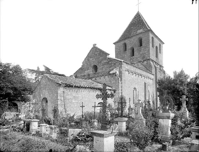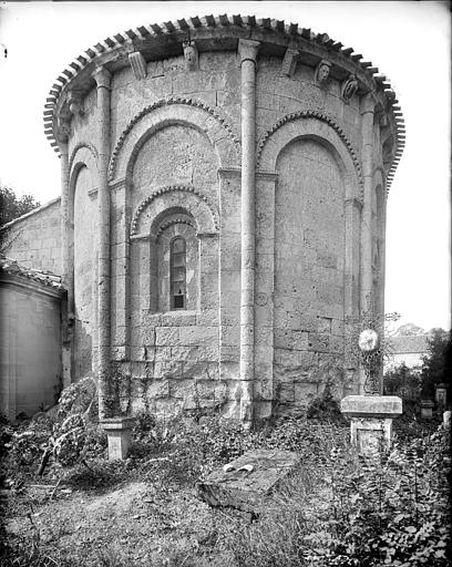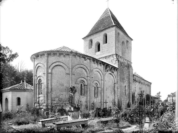 Eglise romane présentant une abside allongée, décorée de sept arcades sur colonnes engagées dont les archivoltes et le bandeau qui les surmonte, sont décorés de billettes et de pointes de diamant. La tour carrée du clocher s'élève au centre de l'édifice. La travée qu'elle surmonte est voûtée par une coupole ovale sur pendentifs.