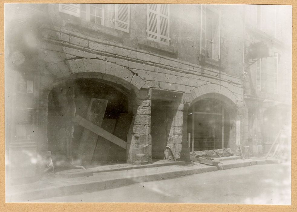 Le rez-de-chaussée de l'immeuble comprend une porte au cintre avec encadrement mouluré et de deux arcades aux claveaux moulurés situées de part et d'autre.