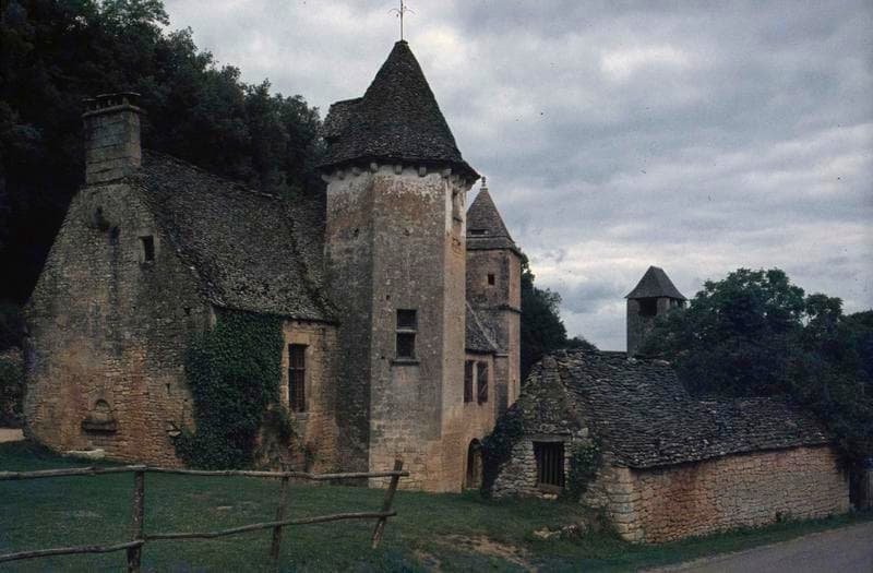 Type du manoir sarladais ayant conservé sa toiture en lauze. Corps de logis barlong accosté d'une tour hexagonale d'escalier du 16e siècle, surmontée d'une girouette de fer forgé, et d'une tour carrée du 15e. Ruine d'une autre tour appuyée à la précédente. Fenêtres à meneaux. Petite terrasse à balustres Louis XIII.