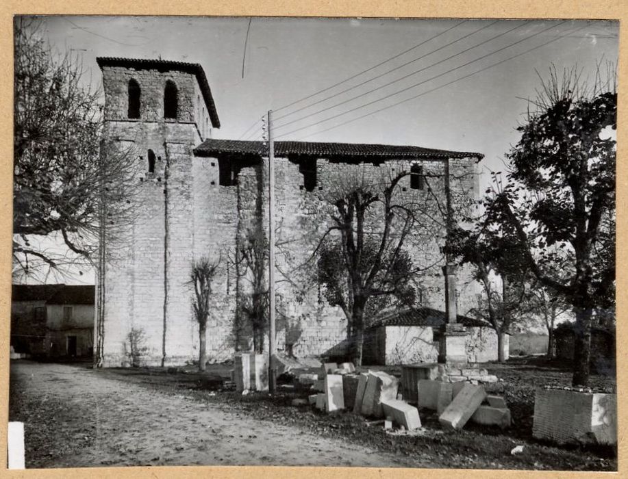 Edifice rectangulaire divisé en quatre travées inégales. La première travée supportant le clocher est barlongue et voûté en arc de cloître ogival. Les deux suivantes sont recouvertes de coupoles sur pendentifs. Au-dessus de la nef s'étend une vaste salle ouverte sur le dehors par de larges créneaux descendant jusqu'au sol. Des trous ménagés dans les murs permettaient d'établir des hourds en bois auxquels ces créneaux donnaient accès. Au-dessus du choeur, le sol s'abaisse d'environ trois mètres, formant ainsi une salle plus élevée pouvant servir de refuge. Le clocher semble dater du 14e siècle et est formé d'un rectangle.