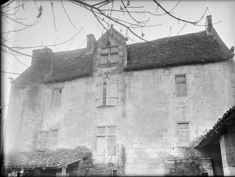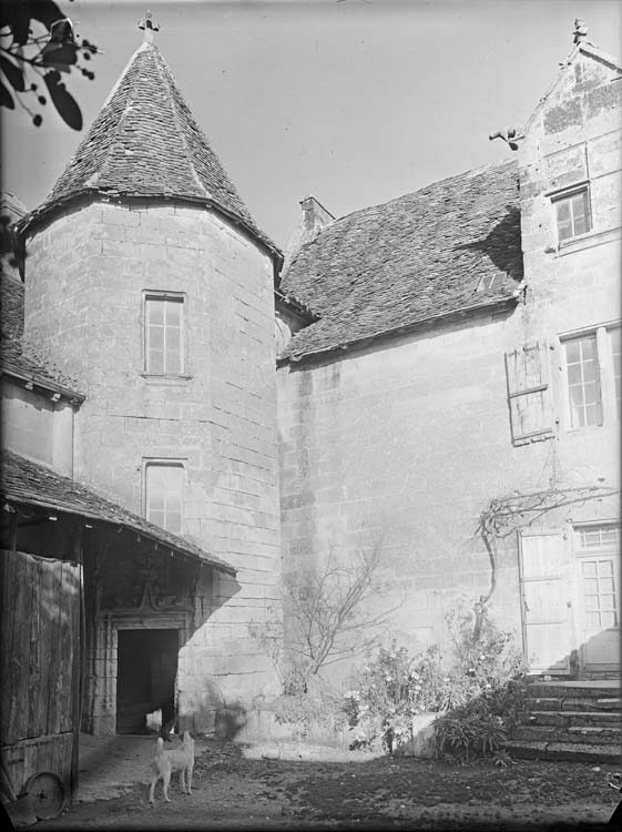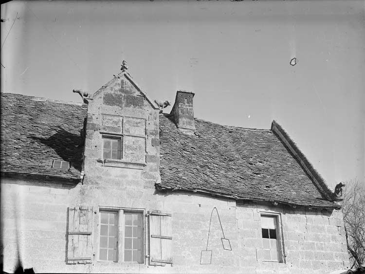 Demeure composée de deux corps de bâtiments soudés en équerre par une tour hexagonale d'escalier. Les lucarnes de la cour ont leur rampant décoré d'un singe et d'un chien sculptés. Une figure grotesque d'homme enjambe le sommet du rampant.
