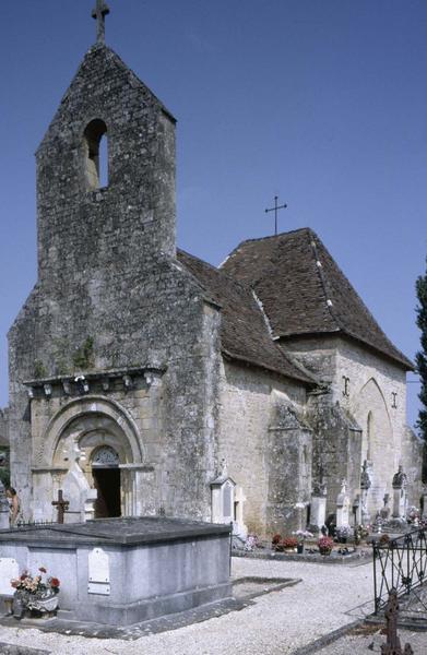 Petite chapelle de cimetière, à chevet plat, du 12e siècle, restaurée au 15e. La voûte du choeur a été refaite à cette époque sur croisée d'ogives. Le haut du clocher-mur a subi une réparation très postérieure. Une petite chapelle seigneuriale avait été ajoutée sur le côté droit. Porche roman à trois arcs en plein cintre ornés de dents de scie et de pointes de diamant, supportés par quatre colonnettes à chapiteaux sculptés et surmontés de corbeaux à têtes humaines.