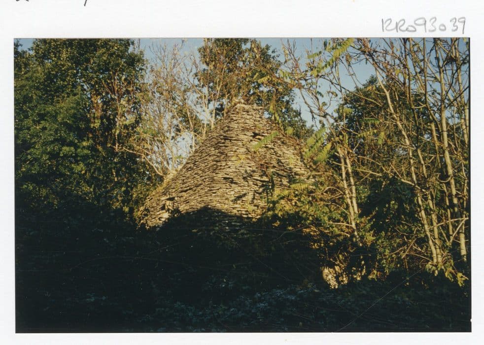 Construction en pierre de base carrée (6x6 mètres) , couverte d'un toit pyramidal en lauze, entourée de nombreuses ruines. Sur la face ouest émerge une souche de cheminée, ruinée au niveau du versant du toit. Les trois autres versants portent un outeau. La face sud s'ouvre par une petite fenêtre. La face est, s'ouvre une porte d'entrée. A l'intérieur, un plancher sur solives délimite un espace grenier (une structure encorbellée supporte le toit, sans doute quatre pans encorbellés se contrebutent sur arêtes, ou bien une voûte encorbellée). La construction est exceptionnelle pour ses dimensions. £Ces cabanes de pierre sèche constituent l'une des composantes caractéristiques du paysage périgourdin. Elles sont toujours implantées dans d'anciennes régions viticoles.