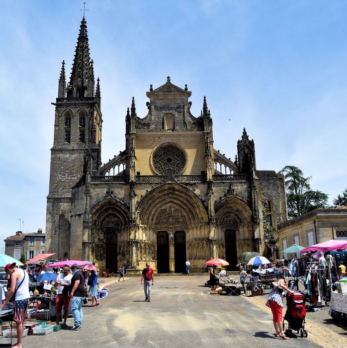 L'édifice est édifié vers 1070 puis agrandi ou rebâti au début du 13e siècle par l'évêque Arnaud II de Pins sur l'emplacement d'une église plus ancienne qui remonterait au 4e siècle. La construction est achevée à la fin du 15e siècle. En 1530 y est célébré le mariage de François Ier avec Eléonore, soeur de Charles-Quint. Après les guerres de religion, l'église est restaurée de 1590 à 1635. La partie supérieure de la façade, détruite par la foudre, est rétablie en 1745. Les trois portails sculptés de cette façade remontent au 13e siècle. Les chapelles absidiales et les piliers du sanctuaire remontent au début du 14e siècle. Les bas-côtés furent terminés en 1598 et 1599.