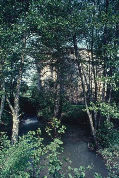 Reconstruit au 14e siècle, le moulin dépendait de l'abbaye de Blasimon. Bâti comme une maison forte, de plan carré, il présente six niveaux. Les 4e et 5e étages étaient réservés aux logements et le 6e étage est formé par le chemin de ronde établi au-dessus des mâchicoulis. Une tourelle d'escalier fut rajoutée au 15e siècle. Le moulin possédait deux roues hydrauliques, l'une horizontale, liée à l'activité meunière et l'autre, verticale, qui actionnait une batterie de foulon.