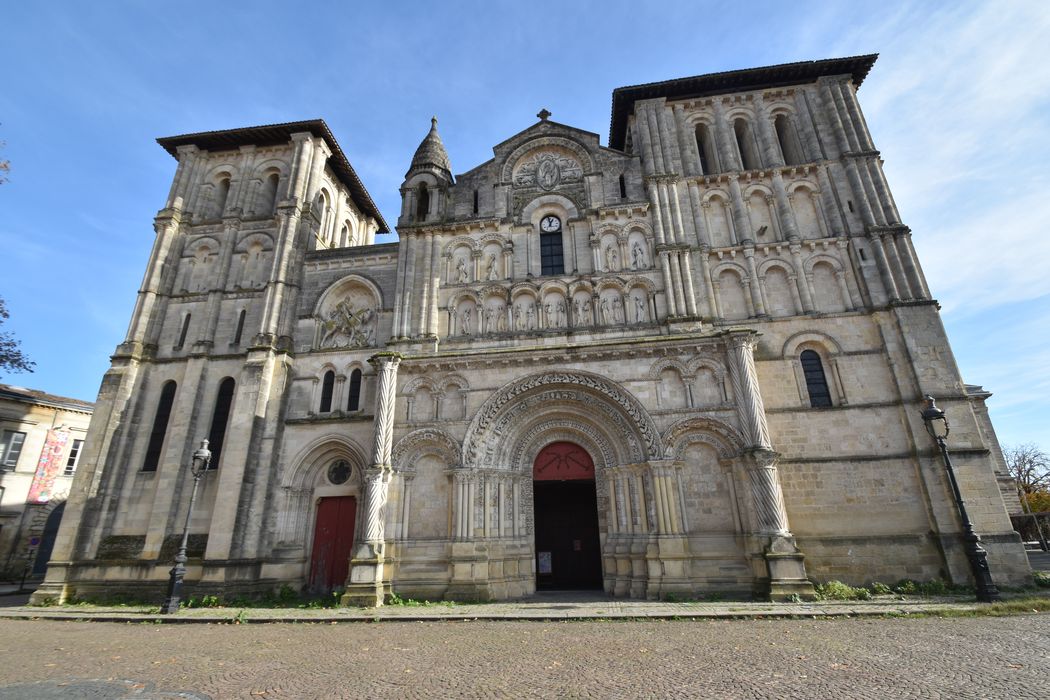 L'église existait déjà en 653. L'édifice détruit en 729 fut restauré en 778. A nouveau démoli par les Normands en 848, il fut rétabli en 902 par Guillaume le Bon. Le portique extérieur est la partie la plus ancienne et peu remonter au 11e siècle. La porte principale se compose de cinq grandes arcades. De chaque côté, elle est accompagnée d'une grande niche surmontée de deux autres plus petites. Sous les arcades de l'entrée, les angles saillants entre les colonnes sont décorés d'arabesques, d'entrelacs, d'enroulements, d'animaux fantastiques sculptés. Un zodiaque a été commencé sur l'archivolte de la seconde arcade. Les archivoltes des deux grandes niches s'ornent de groupes sculptés. Au-dessus du portique régnaient autrefois deux rangs de niches. Il ne reste plus que cinq niches. Le plan de l'église est en croix latine. L'église se compose d'une nef et deux bas-côtés. Le clocher quadrangulaire est antérieur au gothique.