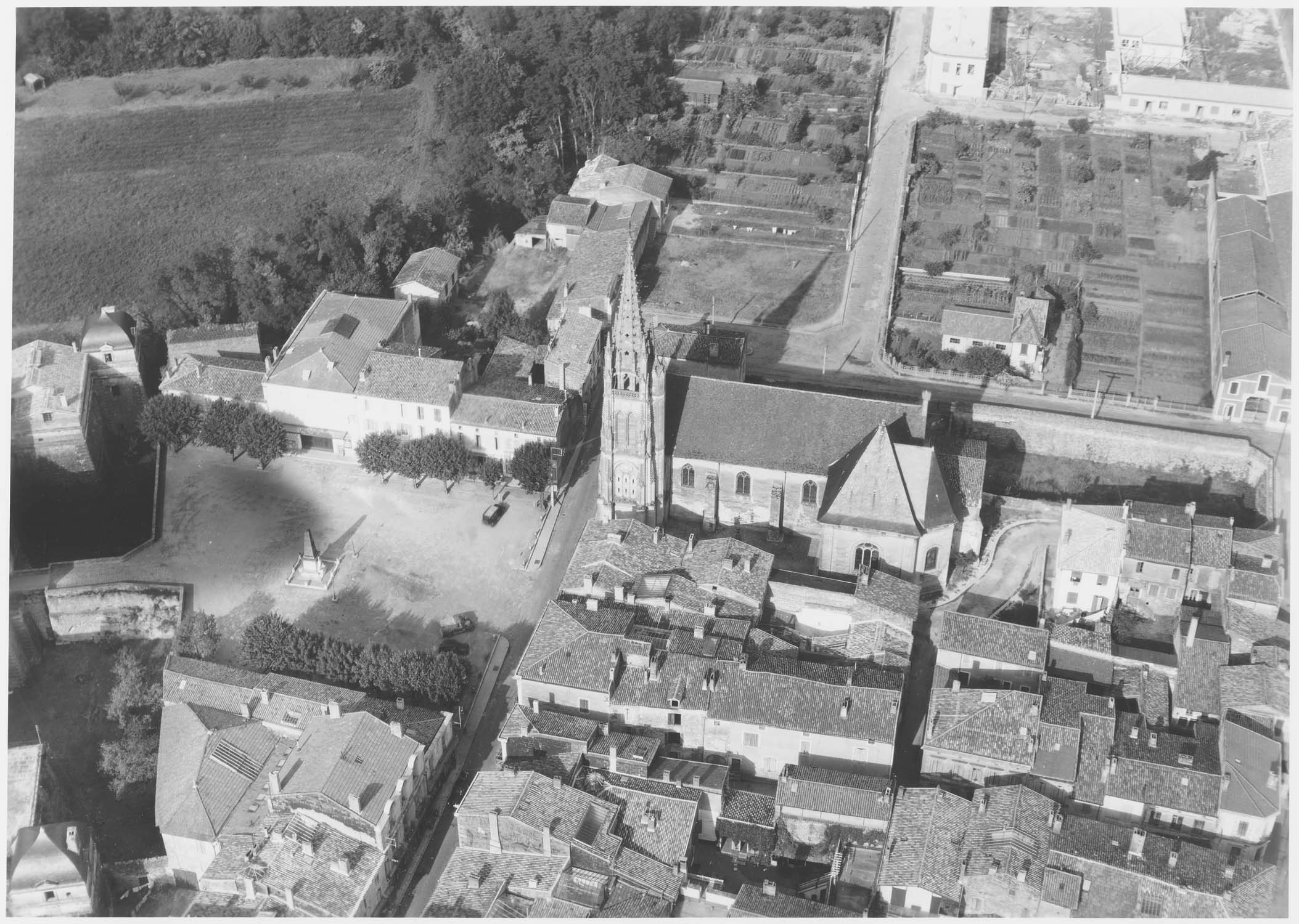 Collégiale fondée en 1490 par Gaston III de Foix Candale, et reconstruite entre 1541 et 1544. Au 17e siècle, l'église est flanquée au sud d'une chapelle abritant les tombeaux des ducs d'Epernon, sous laquelle se trouve une crypte. La façade ouest et le clocher sont l'oeuvre de l'architecte Labbé, vers 1865. Nef unique de cinq travées. Une clôture de pierre et marbres polychromes sépare la chapelle funéraire de la nef. La charpente de la nef est d'origine.