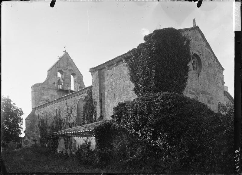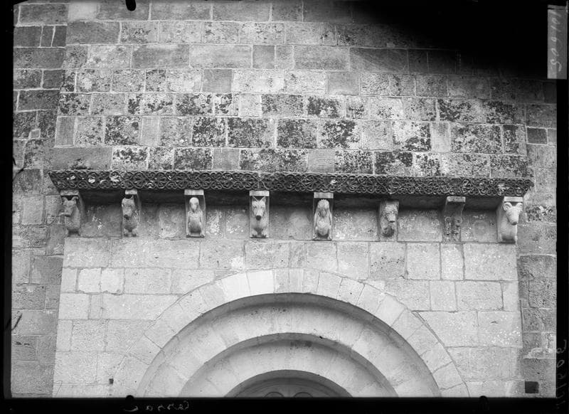 La porte ouest est romane à trois paires de colonnettes. Les chapiteaux sont historiés, présentant des personnages aux vêtements plissés. Des volutes développées sont modelées sous les angles des tailloirs.