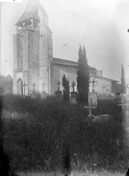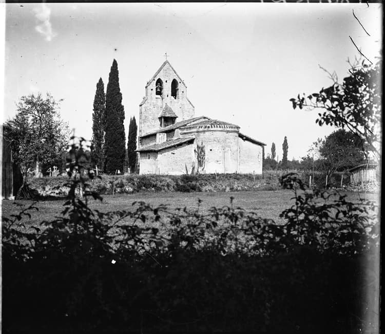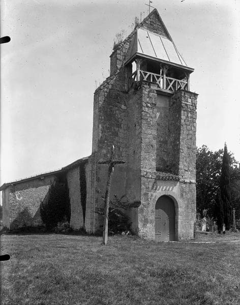 Eglise du 12e siècle, construite sur une villa gallo-romaine. Elle présente une nef unique non voûtée, terminée par un choeur voûté en cul-de-four. Au 19e siècle, création d'une chapelle au nord, et d'une sacristie côté sud. Le clocher roman est flanqué de deux contreforts. Des sondages réalisés dans le choeur et la nef ont révélé des restes de peintures du 14e ou du début du 15e siècle.