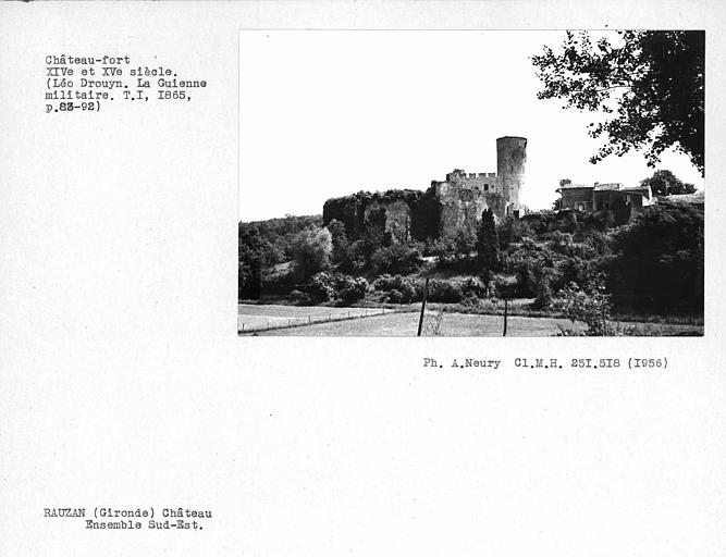 Le château, l'une des plus importantes forteresses de la Guyenne, appartint pendant longtemps aux ducs de Duras. L'édifice, de plan irrégulier, était précédé d'une basse-cour fortifiée. Il ne subsiste que des murailles épaulées de contreforts et une bastille en forme de demi-lune qui défendait l'entrée. Appuyé au sud de l'enceinte, le château présente les ruines d'un donjon accolé à une tour cylindrique, et un corps de logis flanqué d'une tourelle d'escalier. Les angles des courtines sont défendus par des tours carrées. Toutes les constructions ne semblent pas remonter au-delà du 14e siècle. Les fenêtres extérieures du donjon sont du 15e siècle, de même que l'escalier à vis du logis.